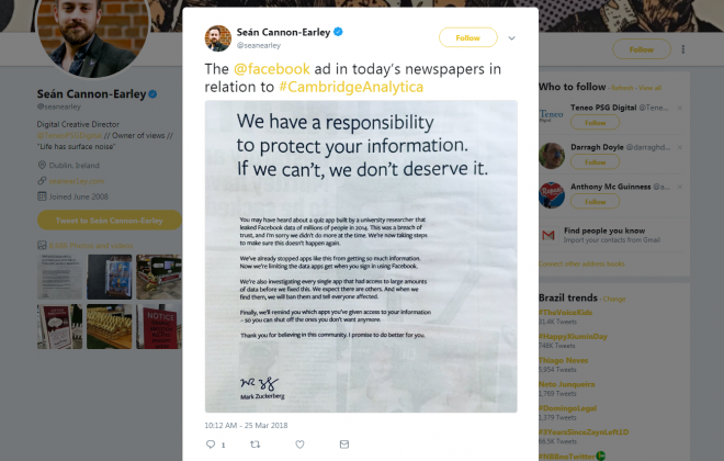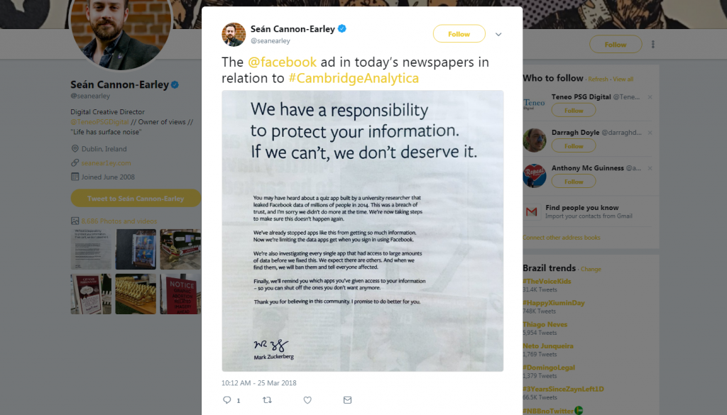 Presidente do Facebook usa anúncios em jornais para pedir desculpas aos britânicos