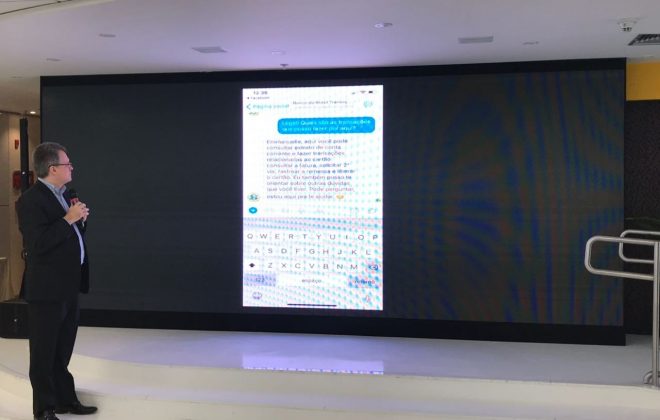 Clientes poderão consultar saldo da conta corrente e fatura do cartão de crédito pelo Messenger, app de bate-papo da rede social. Gustavo Fosse, diretor de tecnologia do BB, apresenta ferramenta do BB que permite transações bancárias pelo Facebook. Helton Gomes / G1 O Banco do…