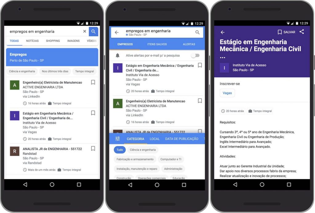 Google Jobs permite listar os postos de trabalho mais próximos à casa do internauta. Origem: G1 Tecnologia
