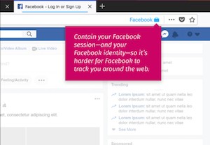 O “Facebook Container” é um complemento, disponível nesse link (aqui), que impede o uso das informações do usuário com outros sites na rede; não é o mesmo que a funcionalidade de navegação anônima presente nos principais navegadores. Esse recurso bloqueia qualquer tipo de atividade externa que utilize as informações pessoais para que seja apresentada algum tipo de publicidade segmentada na linha de tempo. A extensão atua sobre os arquivos temporários (cookies) que contém as preferências do usuário – esse tipo de arquivo é rastreado por serviços online durante a navegação. Quando a extensão é instalada no navegador, ela se encarrega de remover automaticamente todos os “cookies” que seriam usados externamente, evitando que informações pessoais sejam associadas endereços fora do Facebook.