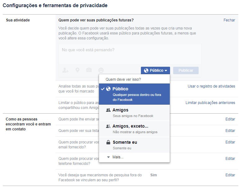 Quando publicam algo na rede social, os usuários podem escolher deixar a publicação visível para: