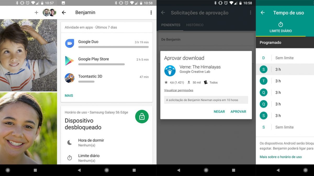 Pais podem limitar download de serviços e o horário de uso de smartphones. Aplicativo de mensagens? Proibido. Navegar no celular depois das 22h? Não pode também. Se depender do Google, os pais brasileiros conseguirão mais do que apenas tentar impor essas restrições a seus filhos. A empresa lança nesta quarta-feira (28) um aplicativo para os responsáveis por crianças controlarem o que podem ou não fazer em um smartphone que rode Android e em qual horário.