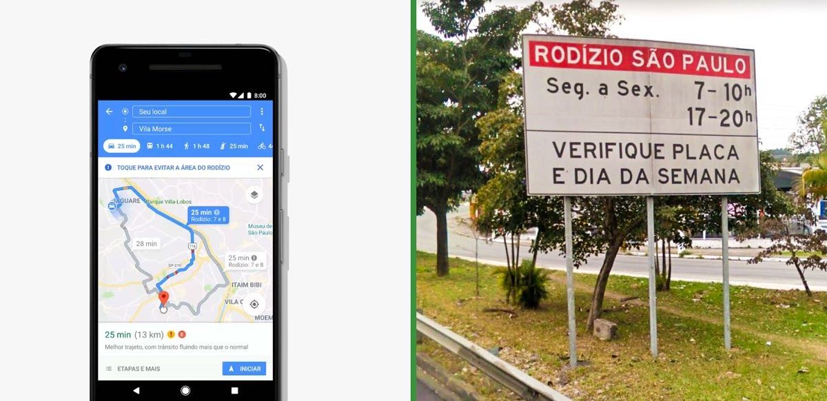Google Maps mostrará como escapar de zona de rodízio no Brasil