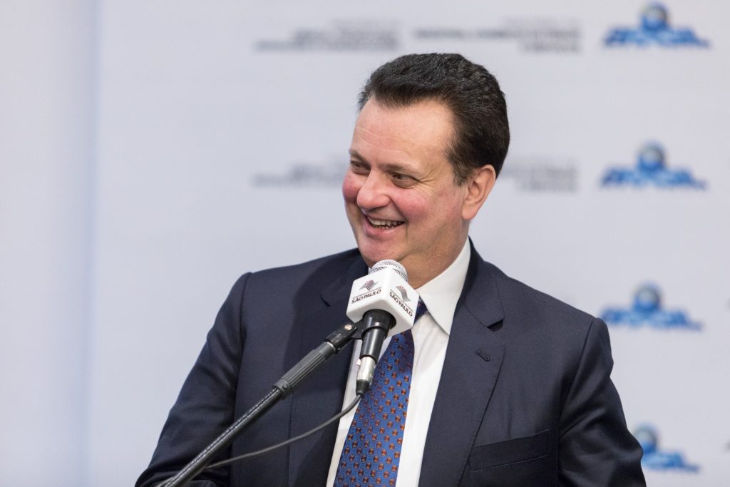 Marco trata da transformação das concessões de telecomunicações em autorizações. O ministro Gilberto Kassab fala durante evento no Palácio dos Bandeirantes, em São Paulo, em fevereiro de 2018