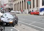 Carro cruzou o sinal vermelho na cidade de San Francisco no último domingo e bateu em um Mini Cooper, que atingiu um casal que cruzava a faixa de pedestres. O impacto matou Benjamin Dean, de 39 anos. Sua esposa está hospitalizada em estado crítico. Motorista foi presa