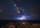 A Nasa publicou hoje uma foto inédita que mostra o momento exato em que relâmpagos aparecem sob via láctea, vistos da região na ilha de Sardenha, no sul da Itália.